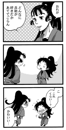 版権お題にアレがきたのでよいしょぉ!と描きに行って 2回フリーズしてこの時間です 一週間ははじまったばかり!!! くじけそうです人生に… 版権…… 次にお題にあがる頃には凍らないPCになってるといいな リアル10年選手の我が家のPCちゃん! お世話になってます!!!(敬意) 先週はまるっと風邪で潰されました。 よかったインフルじゃなくて〜〜 めったにひかないから引いた時の弱りっぷりがはずかしいです もう元気いっぱいです しばらく原稿してきます。 おぉぉ今回は真剣に燃えろおれの小宇宙!!! 今日は電車で女子が『友達のお兄ちゃん超イケメン!』というのを表現するのに「水嶋hiroを水洗いしたような顔」と言っていたのがおもしろかったです。 PR ツンは正義すごいツボなんですけど!!!!!!1!!! 的な。 ちょっと前にシイ太と見ていたアニメDVDのブロンド碧眼うさ耳の王子がこんなカンジのことを言っていてあまりのツンデレ(後にちゃんとデレる所がパーフェクト)っぷりにシビれましたという話です。 てゆーかこのDVD20年前のなんですけどその頃からツンデレって萌え要素として市民権を得ていたのですね深けぇぇ… ろじのツンはいいよね… ろじさこでツンツンカプは本当にイイ… 兵助君もタカ丸さんもろじのツンぷりは大好きです。 伊助ちゃんはその辺わからない。 たぶん4年生くらいになったらわかるよ! 伊ろじもいいなぁごにょごにょ どんなにきみがすきだかおつきさままでいって、かえってくるぐらい、すきだよ ……っってね!!!!!!!!! 突然妄想がばくはつしました。 名作中の名作「どんなにきみがすきだかあててごらん」より! うぅくく&勘かわゆいかわゆい 私の中でくく勘は『兄妹』で落ち着きました。 問題はどちらが妹か定まってないとゆうことです あーん タカ丸さんを試したり脅したりするのが三郎 兵助をしあわせにしてやって下さいにっこりとさしだすのが勘ちゃん ん?じゃあ勘ちゃんがおにいちゃん? かと思いきやしっかりものの妹ポジ勘ちゃんもかわゆすなのです 兵助くんは困ったお兄ちゃんであり少々天然な妹なのです(お豆腐的な意味で) よし。 うむ 久しぶりすぎて日記の書き方を忘れているようです えーと 年に1回映画館で映画見ればいい方なハムがもう今年に入って3回映画館に行きました。おぉ!どういった風のふきまわし! せっかくだから今年は月1くらいで見に行きたいです やさいのようせい3Dは絶対見にいく!! ちなみに去年唯一映画館で見た映画はカイジでした。 続編あるって本当ですか?友人と一条さんにょたいか説で盛り上がったり盛り下がったりしました。遠藤さんにょたいかは大変おいしかったです利根川さんも素敵でした …まさかの去年の10月の映画話で〆とか。イケナイ! 次はまめ兵助が描きたいです しばらくサイトでのタカくく更新はまめ話ばかりになりそう…です だいじょうぶかなー(私の脳は) も、もう20日とか……リアルにこんなカンジでした まだ正月ぼけから社会復帰してないとかアリですかナシですね 来週からがんばります(あーーー) あと今日兵助くんと魔鈴さんが結婚しました。おめ! ☆矢と忍で6:4の割合アパートです しかし越境カプばかりです何故だろう タカ丸さんは山羊座(女子)とおしどり夫婦です。 越境カプだらけの中で蠍座と水瓶座が結婚した時はリアルに目頭が熱くなりました…末永くおしあわせに… ともコレの話でした そういえば結局トレカは2箱目購入しました。 うむ!2箱じゃ全然コンプできませんでした!やっぱりな! 3箱でもコンプできないとの噂なのであとはバラでじわじわ買っていこうと思います(買うのか) 希少カードの兵助が出なかったのがなによりくやし…ぃ ツンめ!ツン兵助め!かわいいぞ!! シイ太ががつっとログを整理してくれました! ありがとうねぇぇ パチパチもありがとうございます! 何も新しいものがなくて申し訳ないです… あけましておめでとうございます!!!!お っっっそっっっっ…っ orz