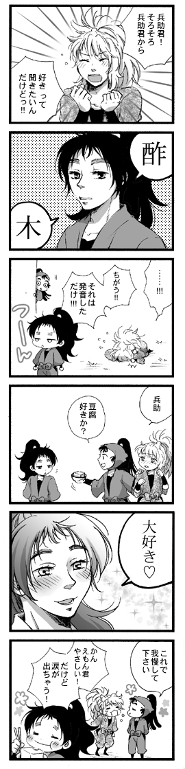 [PR]× [PR]上記の広告は3ヶ月以上新規記事投稿のないブログに表示されています。新しい記事を書く事で広告が消えます。 無題いよ いよ 明日ですねー!!!! ヒュー!!!!! 明日は冬コミページに載ってるモノと、無配のタカくく本と、おまけがある 予定 です。 おまけとか4月の出席~以来…!もえる!! ちまっちました作業大好きですニコ きぬたぬきとしては初めてのコミケなので無駄にテンションが! だだ上がり!! 小宇宙もえっぱなしらん!!! それにしてもここ数日の東京がぬくくて逆に怖いです… そーいや去年もぬくかったな~ お気軽にお声かけていただけたらうれしいです! お時間はかかってしまうかもしれませんが、スケブお受けしますのでよろしくどうぞです。 は~楽しみだ~ 本いっぱい買うぞーハフハフ それでは皆様御武運を!!!!! つづきでメルフォと拍手のお返事です。 もう明日お会いしてお話した方がなんぼか早いと思うんですが… パチパチのみの方もありがとうございました! PR つづきを読む それもAIつまりお豆腐大好きの段です。 べったべたでも1度描いておきたかったアレです。 天然ごのいイイ… なのに成績優秀ごのい… にこにこもぐもぐごのい… ごのい×タカ丸さん いくらでもいけちゃう困った。 はーごのいはなごみ系だな~ でも成績はえぐい そんなごのいに夢中です。 今日予約してたCD受け取ったらジャケットスリック3枚もらえました。 …んん??? フェア終わったんじゃなかったの…?? popはとっぱらったけど地味にフェアは続いているの?? フィギュア予約した時は内金払った時点で特典もらえたのにCDの時はお金払った時スルーで受け取りの時に特典をつける…そのこころは?? とりあえず不当な特典ではないので黙っていただきました。 見事に保健と図書は出ませんでした あーん 火薬かぶったからヨシとします あ~まだフェアやってるならトレカBOXもメイトで買うんだったのにぐだぐだぐだ メージュはスケジュール帳もさることながら本誌の設定資料集部分がとてもおいしいと思います! もったいなくて設定資料集本体はあんまり開けないので、こいつは便利! 切ってファイルにする!わーい あといろんなアニメがあるなぁと普通に勉強になりました。 ヒピラくんアニメ化すげぇぇ 23日は出勤で会社の忘年会でわたしの冬コミ準備が…準備…が… 野球の話 KANちゃん!デジャブる… と思ったらお豆腐かかげる兵助君で同じポーズ描いてました おやおや引き出しの少ない事で! orz かんちゃん! 描きたくてうずうずしてました~あ~やっと描けた! 5-いのかわいさはいったいなんなんですか 仲良し5-いめんこい~~ タカ丸さんが兵助君の春ならかんちゃんは秋であると勝手に納得いたしました。うむうむ過ごしやすい季節~! なんとなくなイメージで。 竹やん:お、豆腐だ。兵助にあげよう タカ丸:兵助く~~んvお豆腐だよ~~vv かんちゃん:兵助自分のあるでしょ(ニコッ) みたいな! お豆腐をくれないのにかんちゃんに懐いている兵助君! イイヨーイイヨーカワイイヨー おひさしぶりです!脱稿しました〜〜 短いの2本描くつもりが力つきて1本になってしまったのでひどいぺらぺら本に…あ〜ぁ〜 無配で何か描きたいです。ムィー しかもびっくりなことに表紙から本文からひとっつも保存してなくてサンプルさえないという。この無能めが!!!!! 絵はボツにした表紙絵でござる。 タカくくは並んでるだけで幸せです。わたしが! 今日家帰ったらシイ太が冬コミページ作ってくれてましたサンキュー あんなカンジです。 火薬本は残部極少となりましたので、今後は通販のみでイベント売りは先日の十色が最後です。ありがとうございました! あ〜〜〜冬コミ楽しみ〜〜〜!!! よろしくお願いしまっす!!! アニメージュ買ったりCD予約したりカラコレ予約したりしました。 近所のメイトは12日の時点でフェア終了してました。なんとー グッズの話はまた後程。 昨日会社のビンゴ大会で真剣にウィィを狙ったのに惨敗の段。 ウィィ…5年生皆でマリオやってたらかわいいな〜 もう12月とはカタログ買って来ました〜〜
